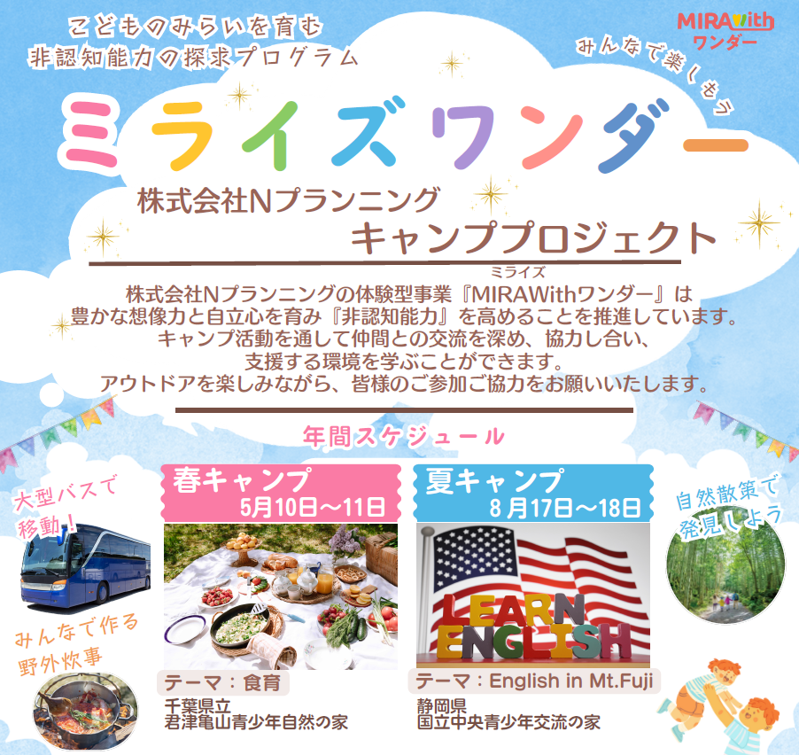 Nプランニングは、その理念に共感し、2024年度より自然体験・宿泊体験を中心としたキャンプ運営の一部を受託